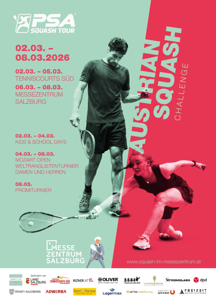 Am Montag beginnt die zwölfte Austrian Squash Challenge in Folge. Von 2. – 8.März findet Österreichs größtes Squashevent auf zwei Veranstaltungsorten statt, nämlich im Tenniscourts Süd und erstmals im Messezentrum Salzburg im Rahmen der Auto-, Garten- und Freizeitmesse. Den Start machen über 300 Kinder bei den Kids…